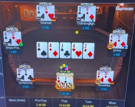 No entanto, não foi bem isso que ocorreu com o brasileiro Carlos Rox no último domingo (23). Ele estava jogando o SpeedRacer US$ 88 na GGPoker, um torneio “hyperturbo” onde a dinâmica é extremamente acelerada e os stacks ficam mesmo bem curtos.