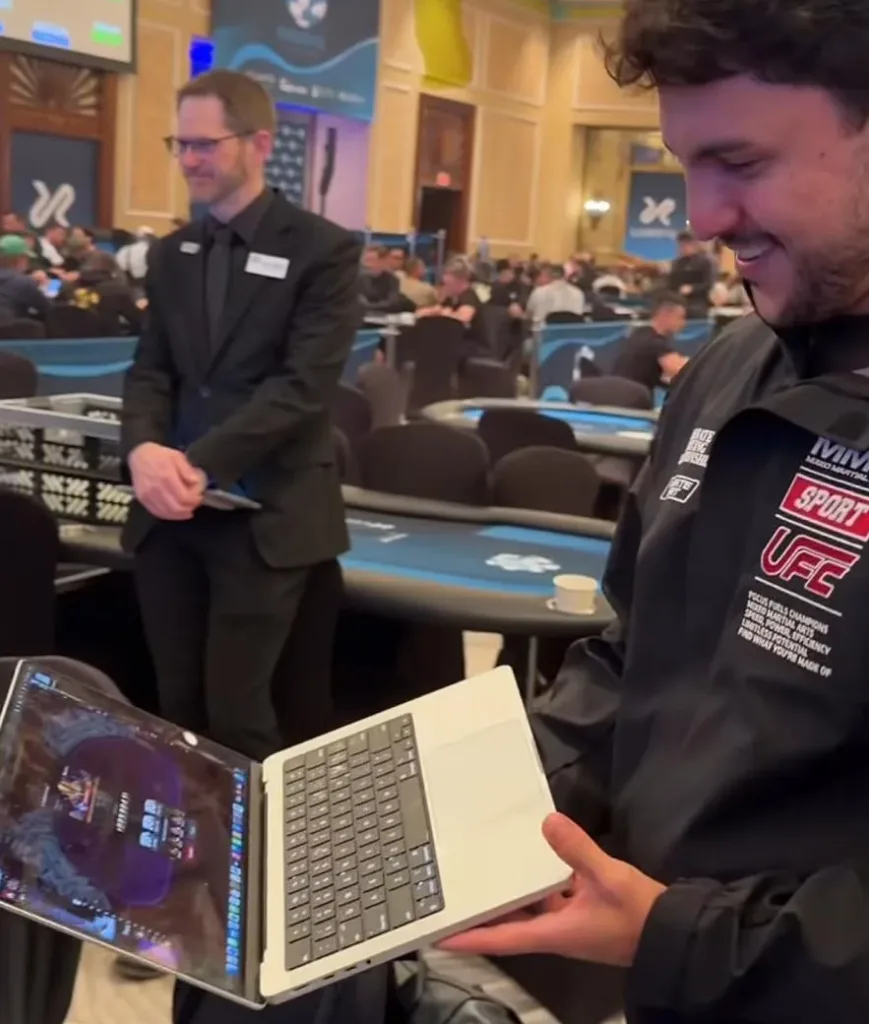 Sendo assim, o mais curioso dessa jornada é que o craque tupiniquim precisou dividir a atenção entre dois torneios. Ao mesmo tempo que disputava o Dia 3 do Super Main Event da WSOP Paradise, em Bahamas, ele encarava a valiosa mesa final com um computador a tira colo.