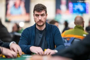 Contudo, foi justamente em um embate entre brasileiros que Matheus acabou sendo eliminado. Ele e Selouan foram em all-in pré-flop com o futuro campeão apresentando A9o contra KQs do compatriota. O board veio com 92722, dando um full-house.